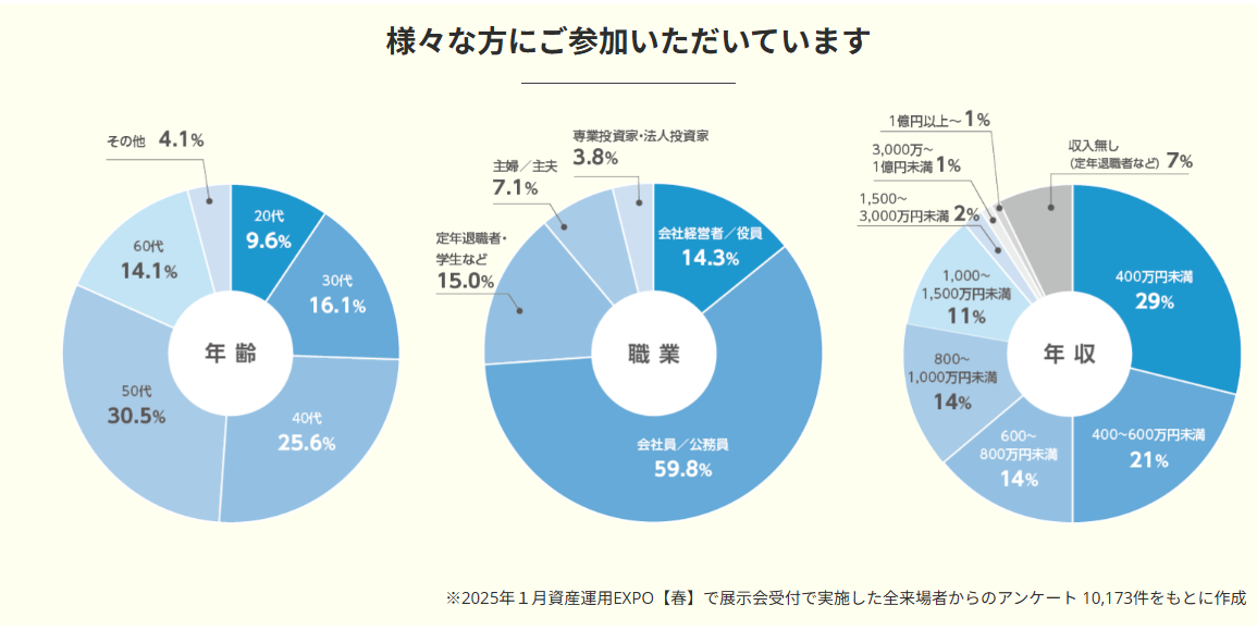 投資初心者から上級者、これから資産運用を始めようと思っている方など、年間3万人以上の方々が来場されています。